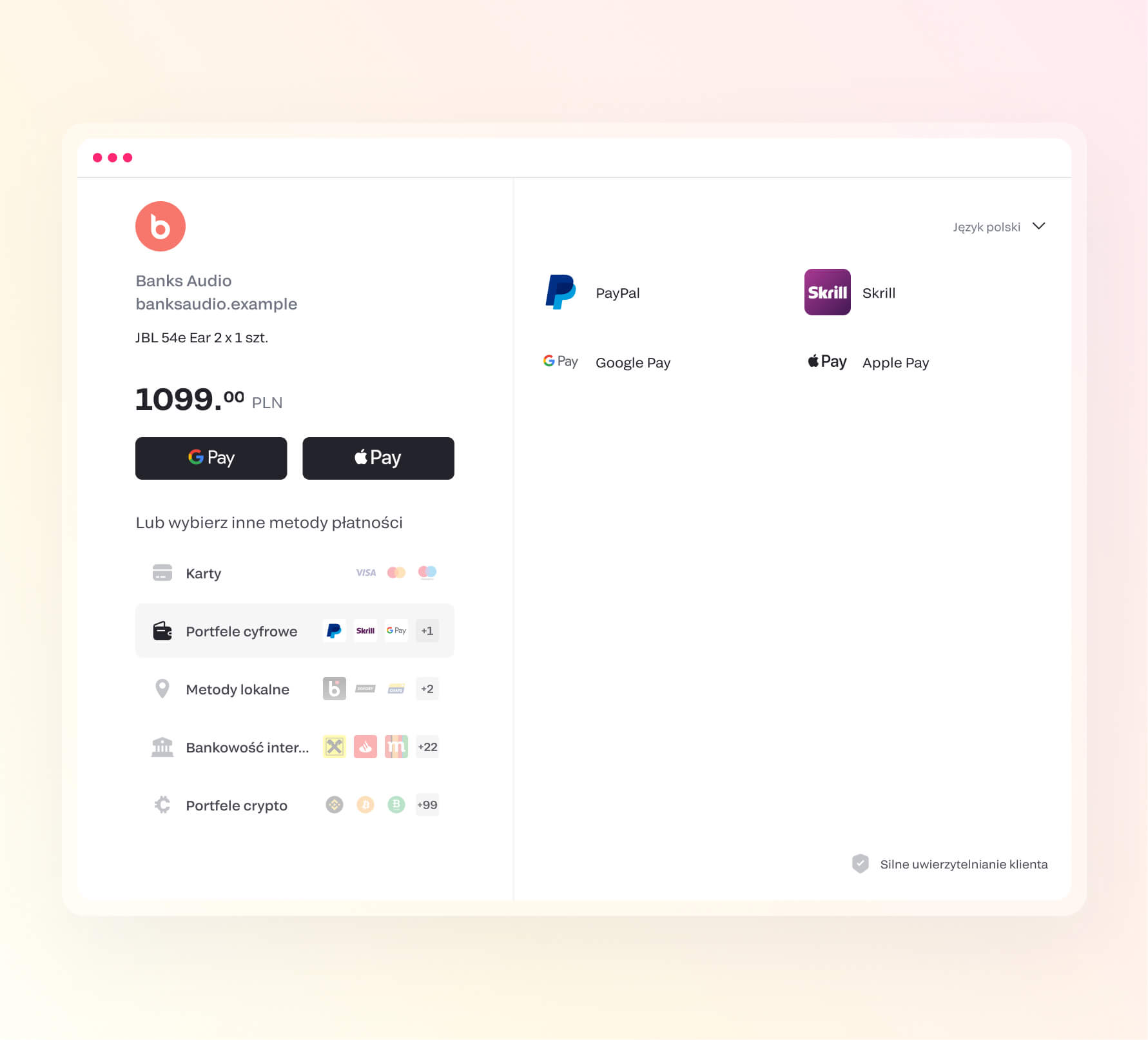 All available payment methods in Poland will be connected by default without complex integrations. This ensures that you can offer a variety of online payment methods to your customers effortlessly, enhancing their shopping experience.
